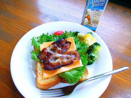 ・ベーコン・チェダーチーズ・レタスのオープントーストサンド