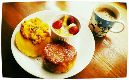 パンケーキは先週作った残りを冷凍しておいたもの。