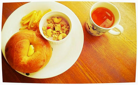 ・フルーツグラノーラ+牛乳+いちご+バナナ