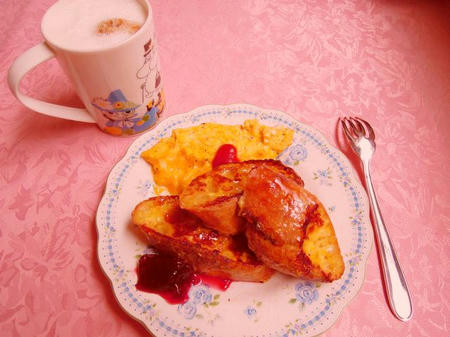 ・バゲットのフレンチトースト(はちみつ+ラズベリージャム添え)