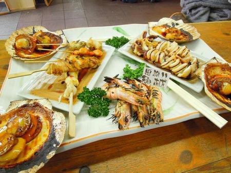 買ったその場で焼いてもらい、市場内のテーブルに自分で運んで相席して食べる方式だったので、隣に座っていたマシュマロお姉さんの視線がこの盛り合わせに釘付けで、非常に恥ずかしく、居心地悪かったです。