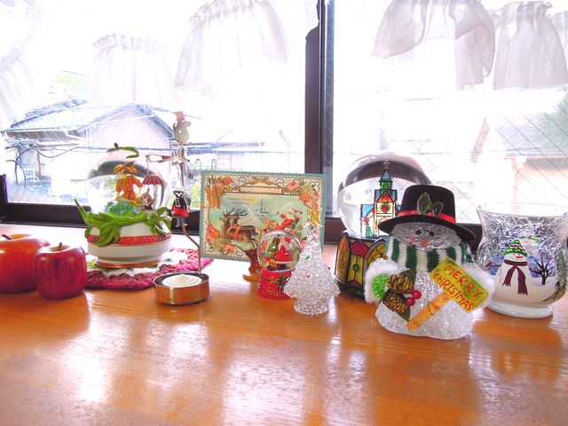 もらったプレゼントを出窓に飾って、ついでに面倒で出していなかった冬の雑貨たちも飾ったら、窓辺が一気にクリスマスになりました。
