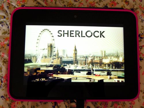 (少し前からキンドルでもhuluが見られるようになりました。上の写真はhuluの「シャーロック」再生画面。)