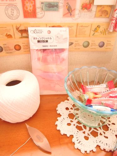 (グラスの下に敷いてるのはタティングじゃなくレース針で編んだもの。)