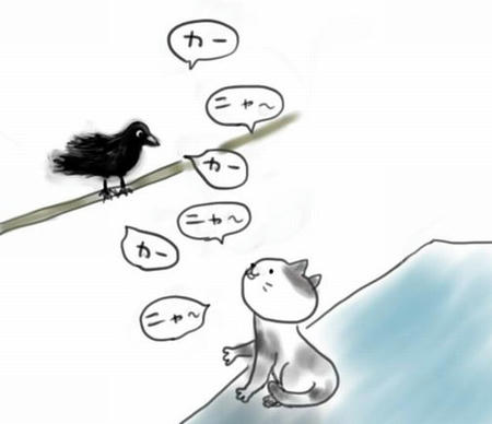 猫とカラスが何か熱心に話してました。