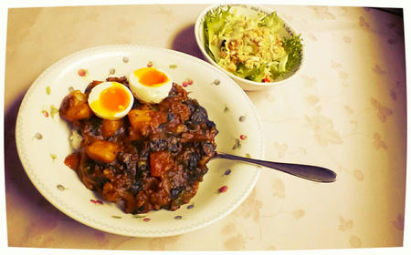 ・ポパイカレー+半熟ゆで卵